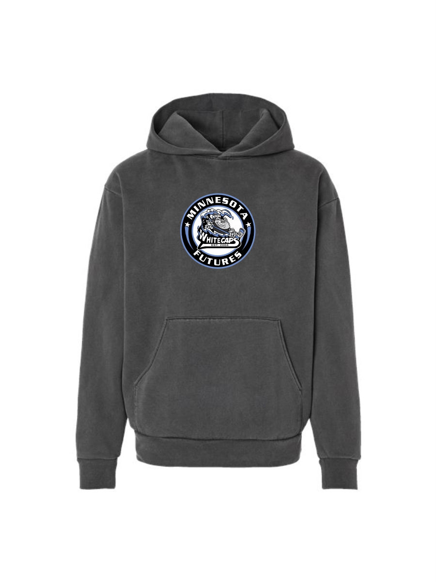 Pigment Black hooded sweatshirt with center chest MN Whitecaps Futures print