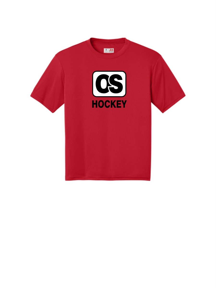 Scarlet short sleeve performance tee with center chest OS Hockey General print