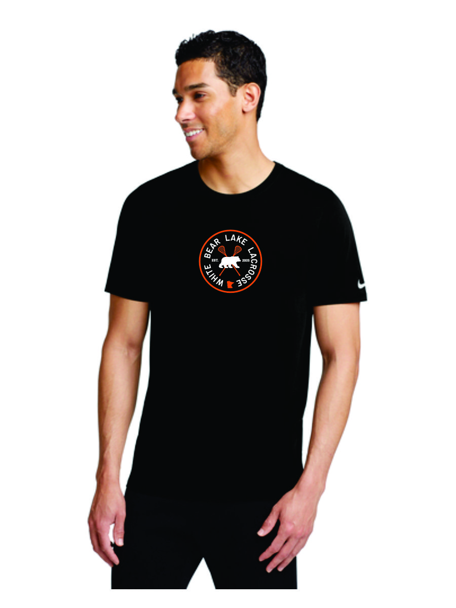 Black short sleeve tee with center chest White Bear Lacrosse print